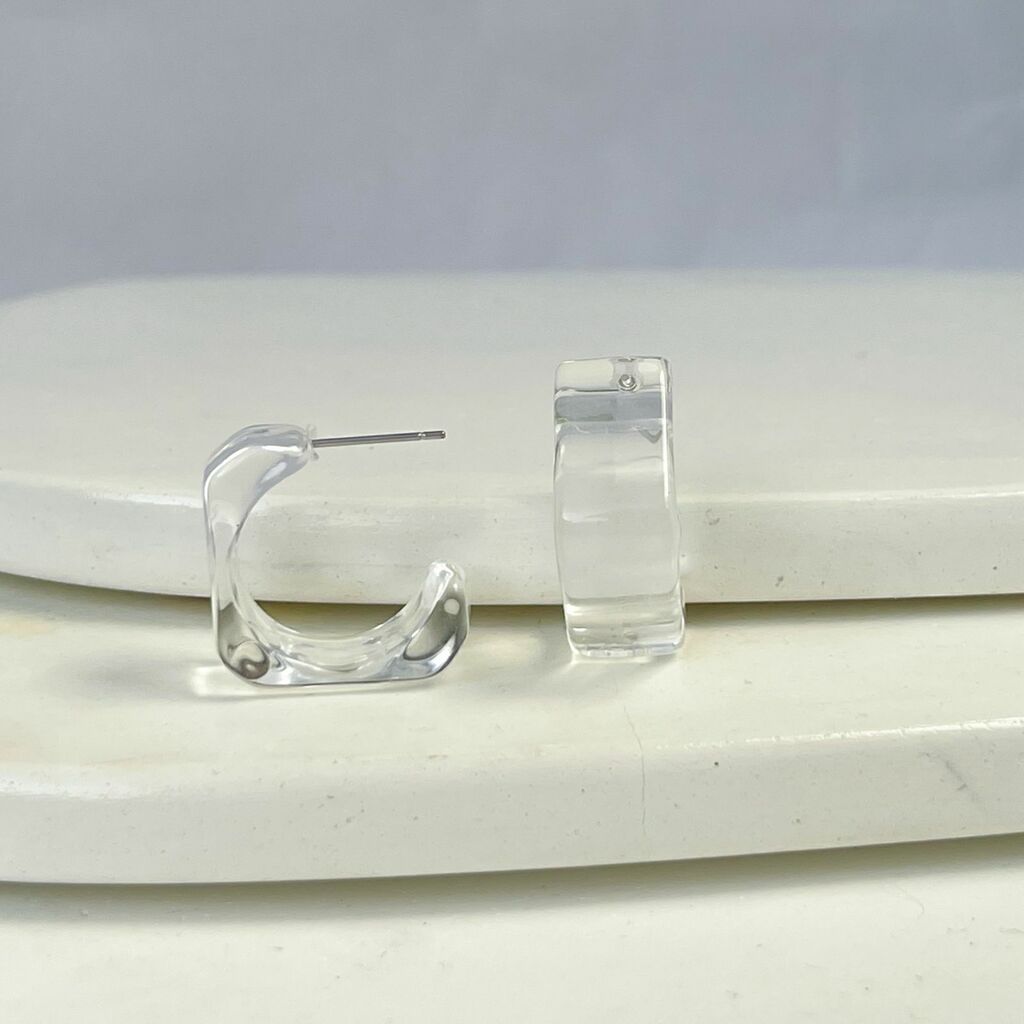 Modelo: Argola quadrada meio aberta, em acrílico transparente.